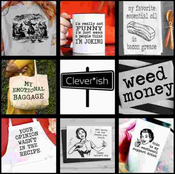 Cleverish Co is a Mother / Daughter owned business, we design and produce all our products in a little home studio in Lees Summit, Missouri. Our sense of humor reflects in the sassy, funny and some times inappropriate kitchen linens, drink ware and t shirts.Product Images: