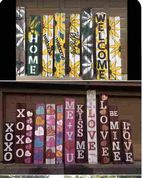 The Texas Sign Lady designs handcrafted yard/porch signs made from reclaimed fence/barn wood. Most of the signs are $10 each and can be personalized with your family name for free. We make signs for every holiday and season. Come shop early, signs will sell out quickly!Product Images: